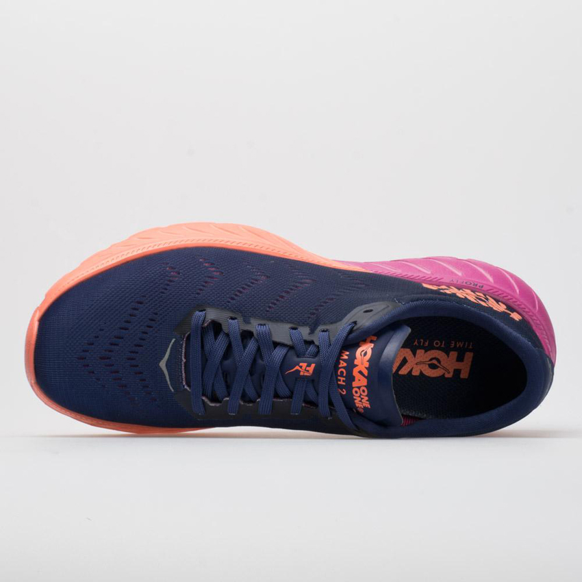 A shining star of the Fly collection, the updated Hoka One One MACH 2 is the shoe for runners who want to a race-ready shoe with premium comfort. The engineered open mesh upper with added perforations provides a comfortable fit with plenty of airflow. The PROFLY? midsole provides a unique blend of PROpulsion in the forefoot and PROtection through shock absorption at the heel. Now, a PROFLY? outsole offers a cushioned landing and a propulsive toe-off for speedy transitions on the run.